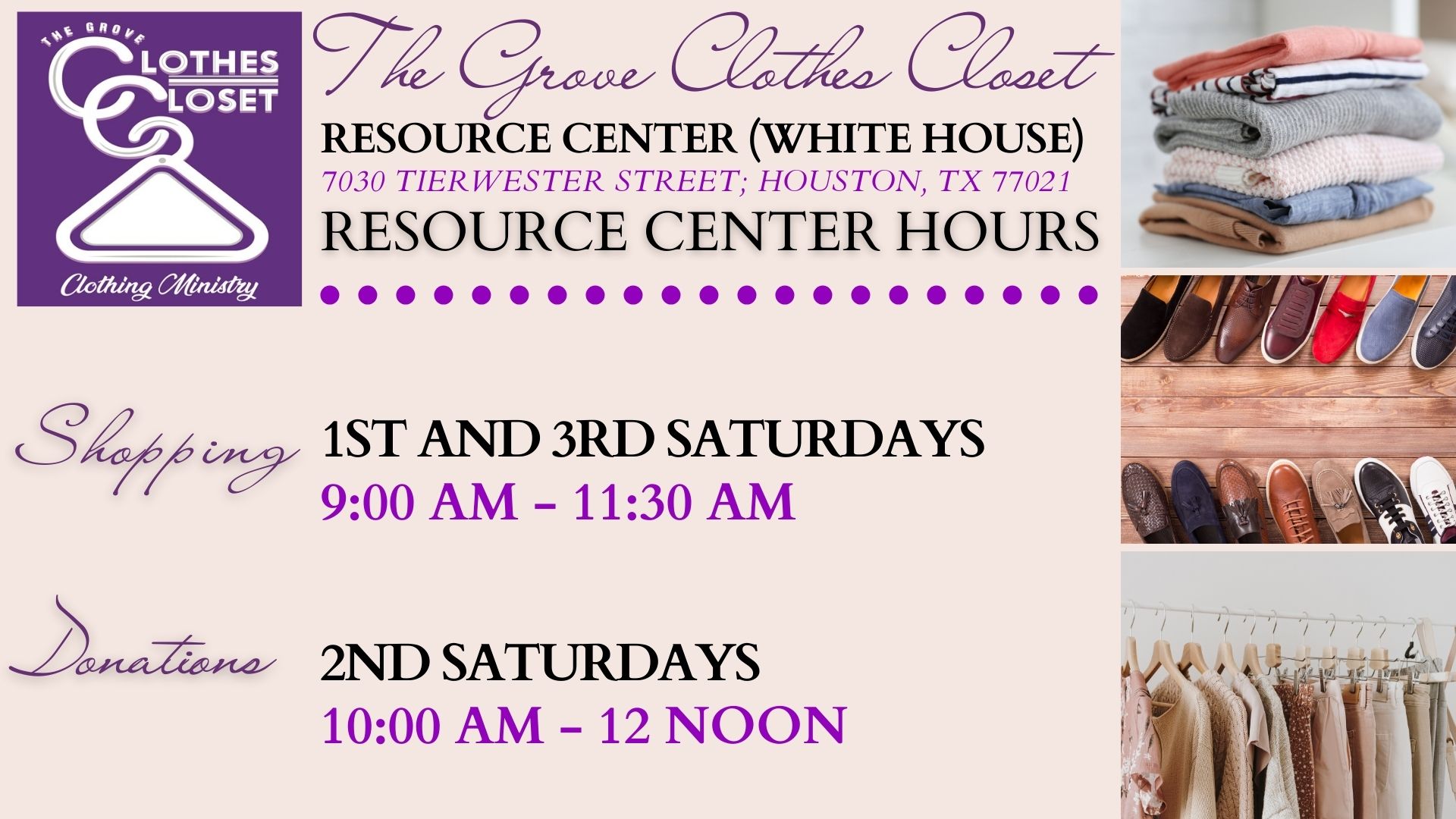 Clothing Closet Event Calendar