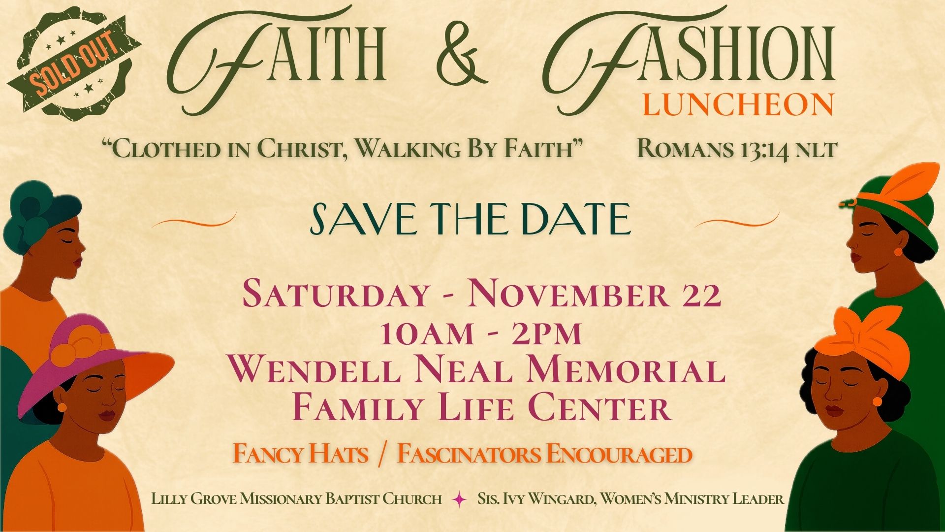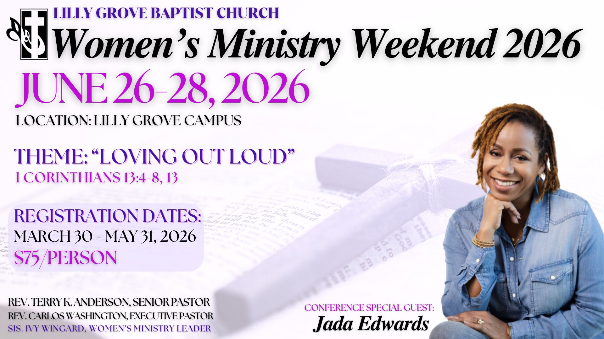 The Lilly Grove Women’s Ministry is an auxiliary of the Church united as one body and one Spirit to worship our Lord and Savior Jesus Christ! We are committed to equipping women of all ages with the word of God, encouraging spiritual growth, and serving joyfully with love and grace to the body of Christ and Community.